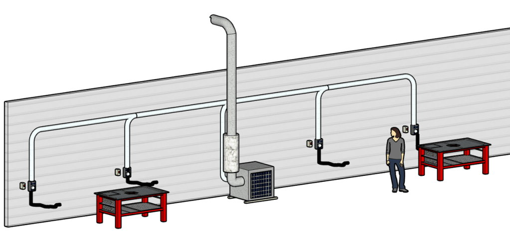 4 Postes de travail de soudage équipés d’aspiration des vapeurs